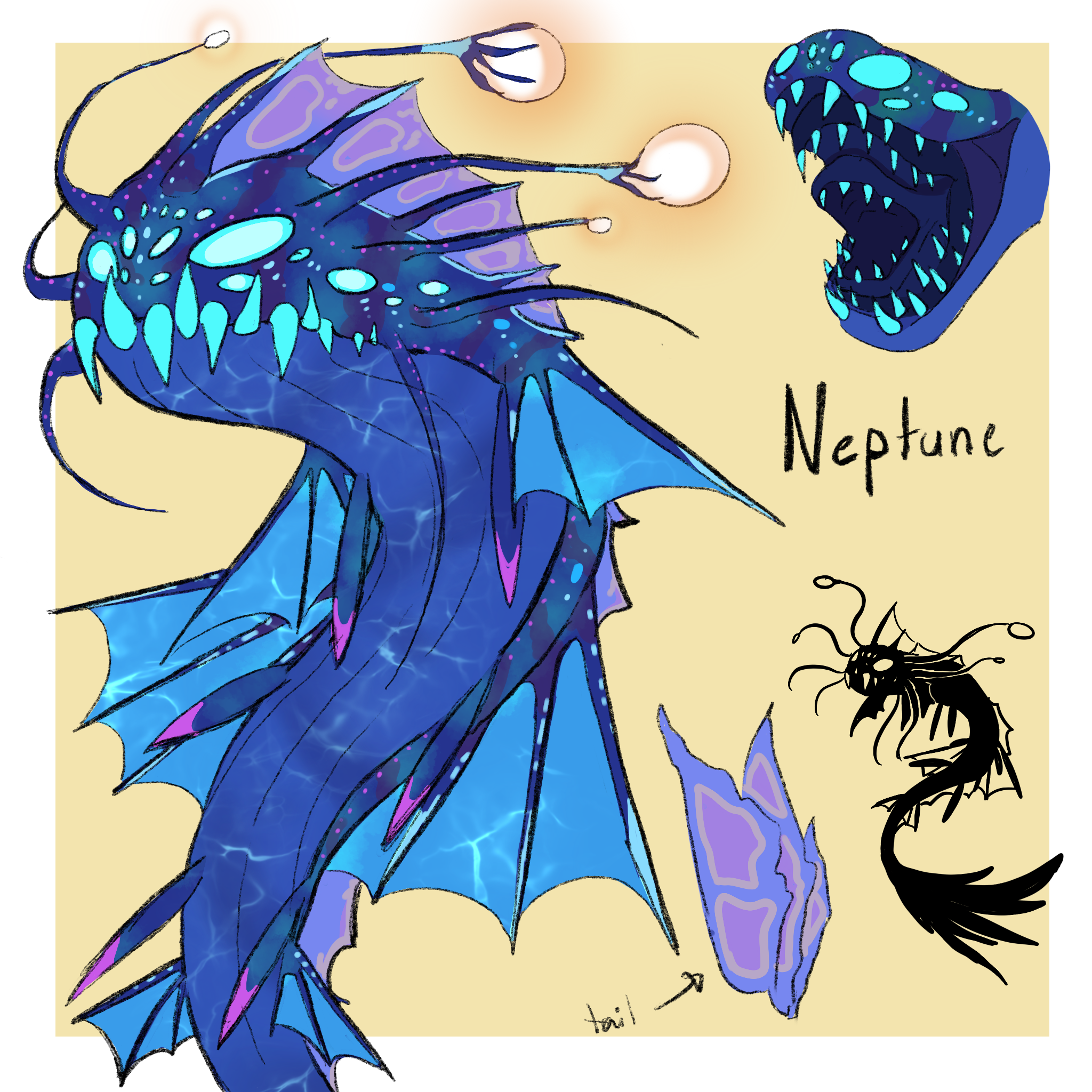 An anthropomorphic sea whale monster inspired by the planet Neptune. This experimental design explores marine and aquatic features, expanding character diversity through imaginative anatomy, flowing forms, and alien-inspired textures.